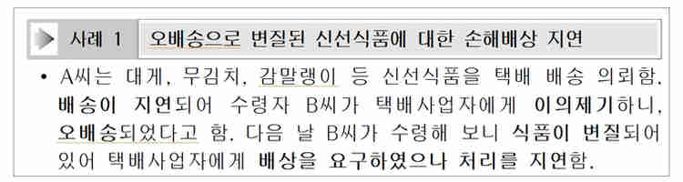 □ 택배 파손, 분실 등의 피해에 대비해 증빙자료를 보관하고, 피해 발생 즉시(수령일로부터 14일 이내) 사업자에게 알려야 한다.
